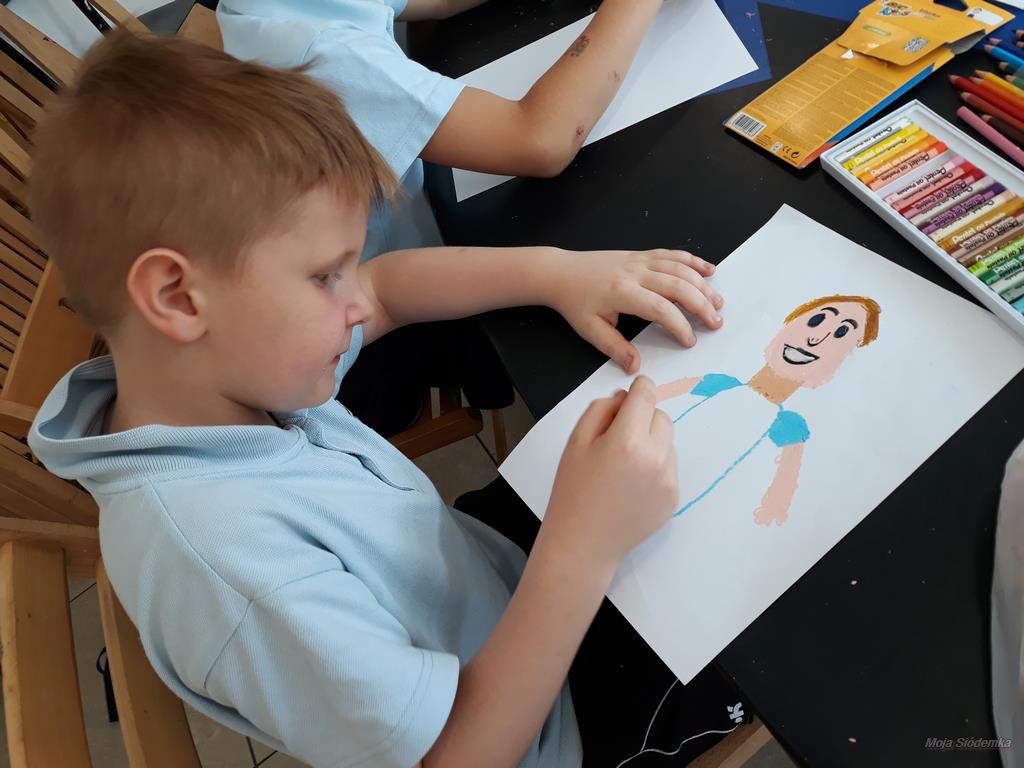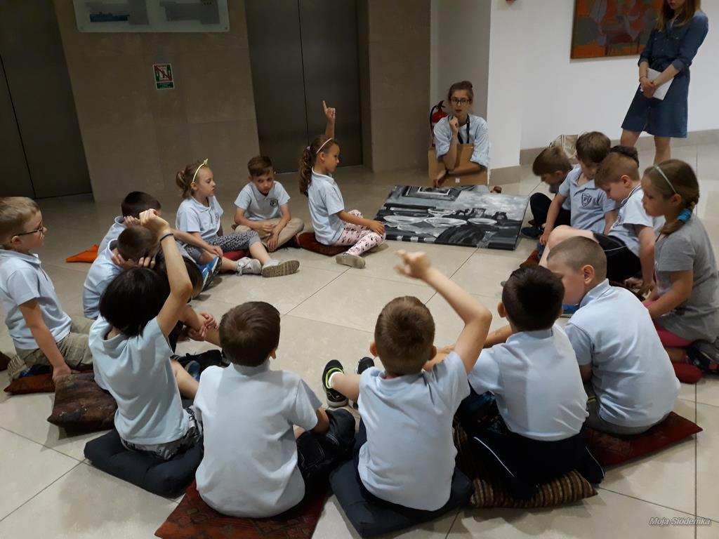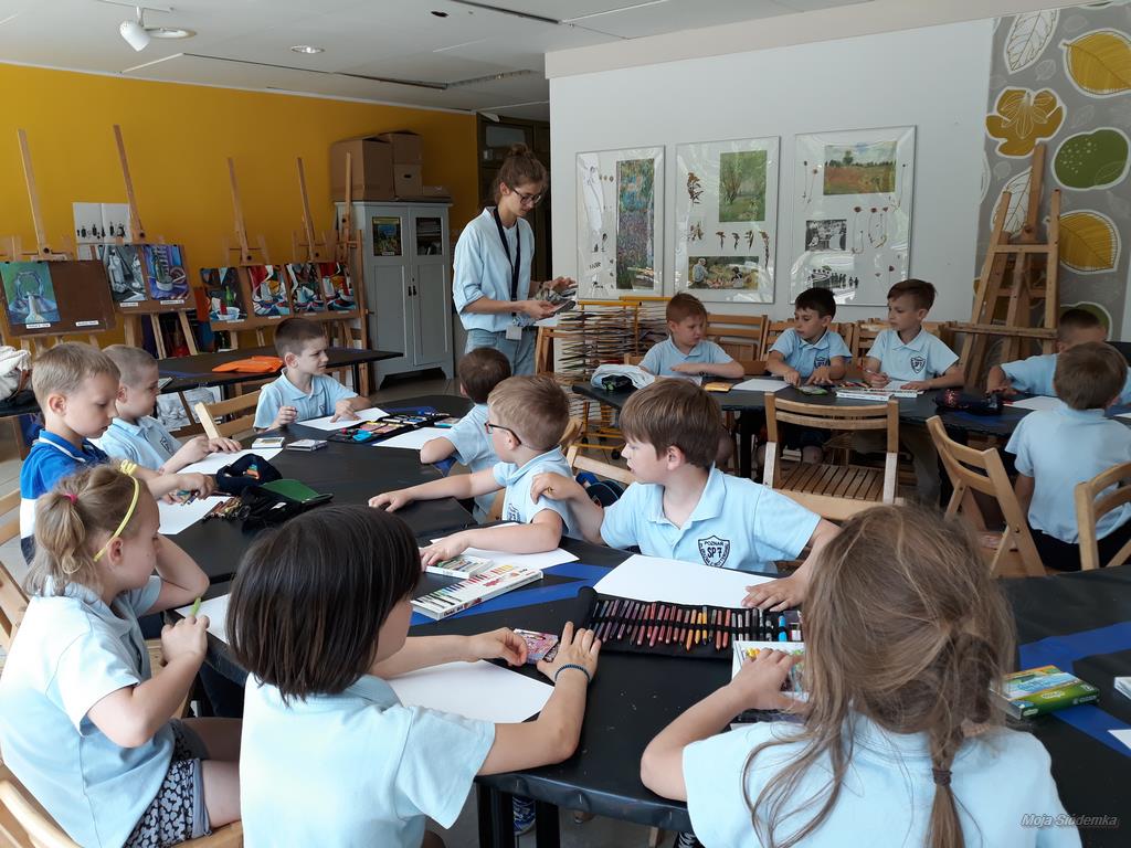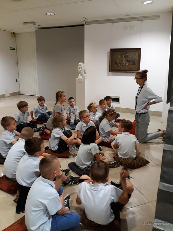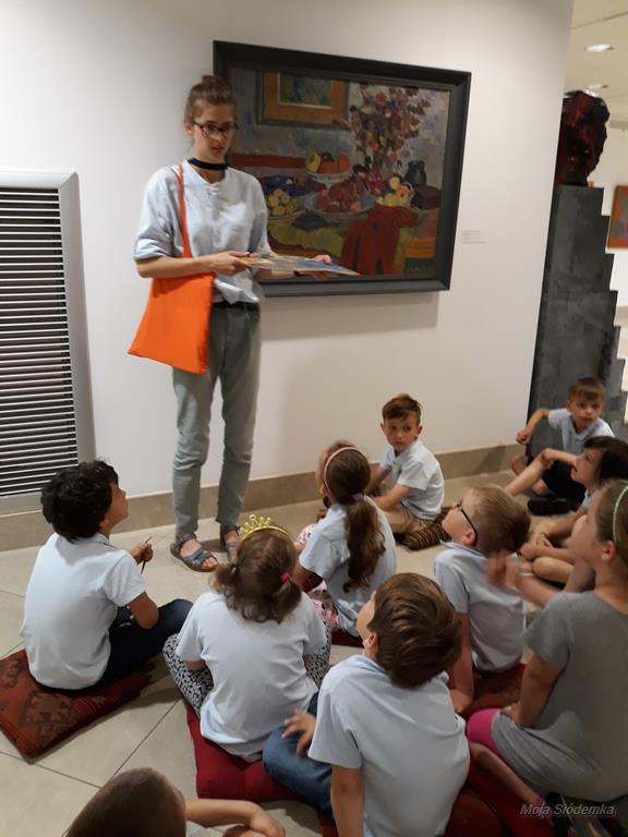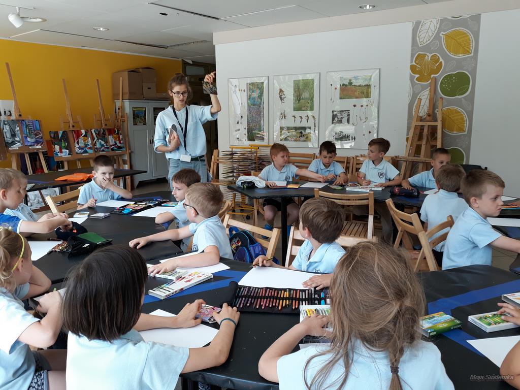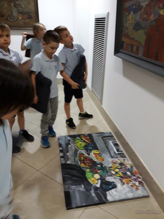 W czasie wizyty mieliśmy do wykonania wiele ciekawych zadań, np.: znaleźć w galerii obrazy, których zdjęcie pokazała nam pani przewodnik, uzupełnić wybranymi elementami obraz martwą naturę, przyjąć postawę, w jakiej został sportretowany król Stanisław August Poniatowski. Na koniec każdy z nas stworzył własne wybrane dzieło przy użyciu kredek i pasteli.