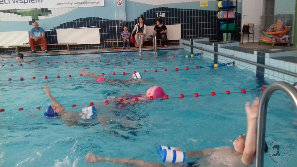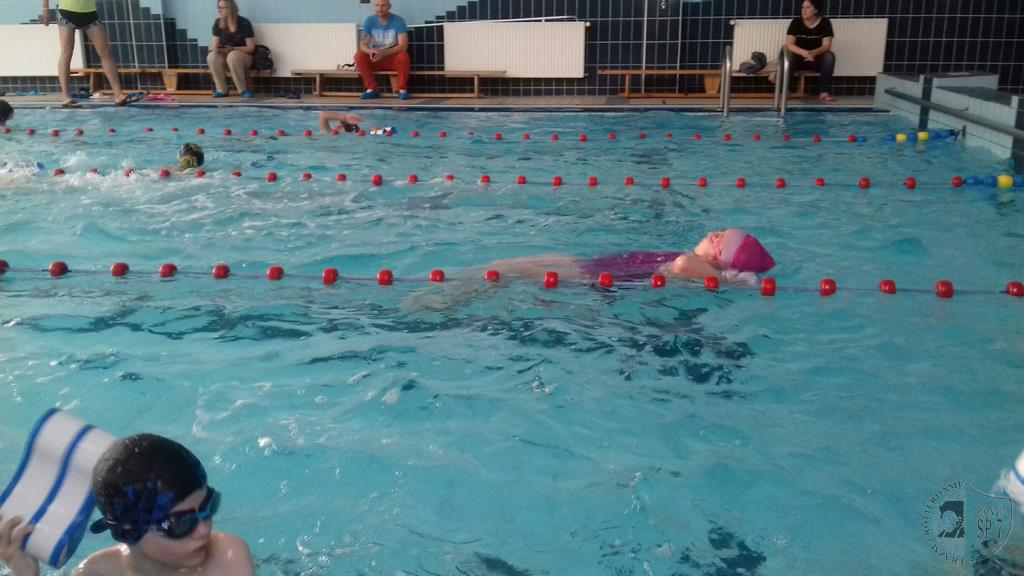 Pod koniec maja na poziomie klas drugich i trzecich odbyło się podsumowanie nauki pływania w roku szkolnym 2017/2018. Pływanie jest jedną z umiejętności kształconych w Siódemce. Zajęcia odbywają się raz w tygodniu. Podczas zajęć nasi uczniowie uczą się przede wszystkim bezpiecznego przebywania w wodzie i czynią to pod czujnym nadzorem wykwalifikowanych trenerów.
