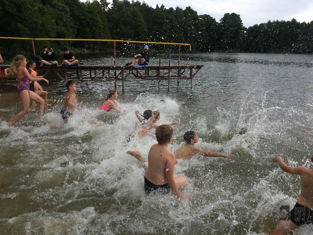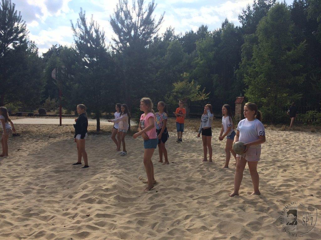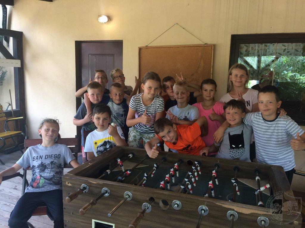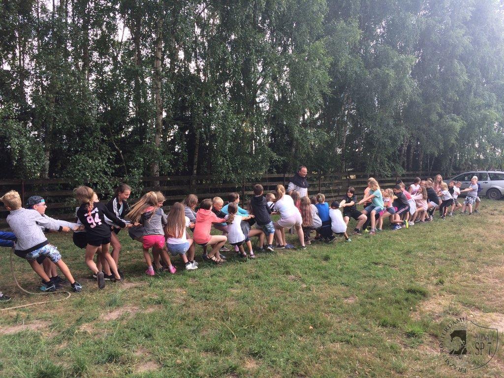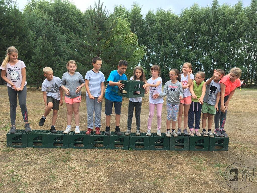 W dniach od 5 -15 lipca 45 uczniów z Siódemki wypoczywało na obozie rekreacyjno – sportowym w Żurawińcu. Podczas jedenastu dni dzieci mogły uczestniczyć w wielu letnich atrakcjach, korzystając z pięknej słonecznej pogody. Kąpaliśmy się w jeziorze Piaskowym, pływaliśmy na rowerach wodnych na Jeziorze Sierakowskim oraz tworzyliśmy różne budowle z piasku. Dziecięcą kreatywność rozwijaliśmy również poprzez szereg zajęć manualnych: lepienie z gliny, malowanie kamieni, oraz tworzenie najróżniejszych skarpetkowych pacynek. Dodatkowo mogliśmy poznać piękną Puszczę Notecką przez opowieści przyrodnika Pana Witka oraz odwiedzając Centrum Edukacji Przyrodniczej w Chalinie i w Mokrzcu. Wchodząc na Wieżę Przeciwpożarową pod opieką przedstawiciela Lasów Państwowych mogliśmy obserwować przepiękne leśne tereny. Rozwijaliśmy również umiejętności sportowe: bieg terenowy, podchody, bieg nocny, spartakiada sportowa, zabawa czekolada, rozgrywki w tenisa stołowego i piłkarzyki oraz ulubione gry rekreacyjno-sportowe i kręgle. Wieczorami mogliśmy pokazać swoje mocne strony w konkursach: Mam Talent i Bal Przebierańców. Dziękujemy wszystkim uczestnikom obozu za miłą i radosną atmosferę oraz udział w pełnej wrażeń przygodzie wakacyjnej.