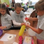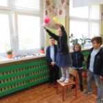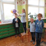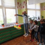 Każda grupa miała za zadanie zbudować konstrukcję jajkodromu, która umożliwi jajku bezpieczne lądowanie z wysokości około 2 metrów. Do dyspozycji grupy miały: plastikowy kubeczek, trzy słomki, trzy balony, ręcznik papierowy, piórka, trzy kartki papieru i taśmę klejącą. Ustaliliśmy, iż zadanie zostanie zaliczone, jeżeli jajko umieszczone w konstrukcji, po zderzeniu z ziemią nie stłucze się.