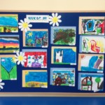 Podczas prezentacji dzieci słuchały muzyki i oglądały prace plastyczne wykonane przez wszystkie klasy różną techniką.