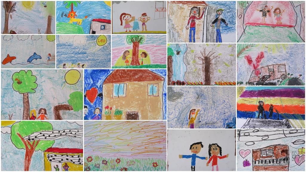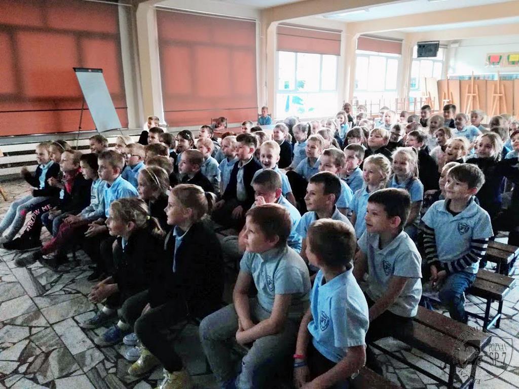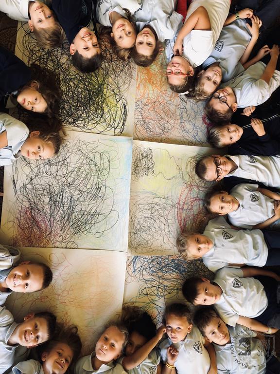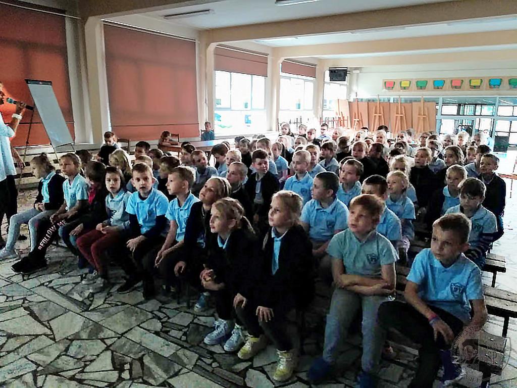 Podczas prezentacji dzieci słuchały muzyki i oglądały prace plastyczne wykonane przez wszystkie klasy różną techniką.