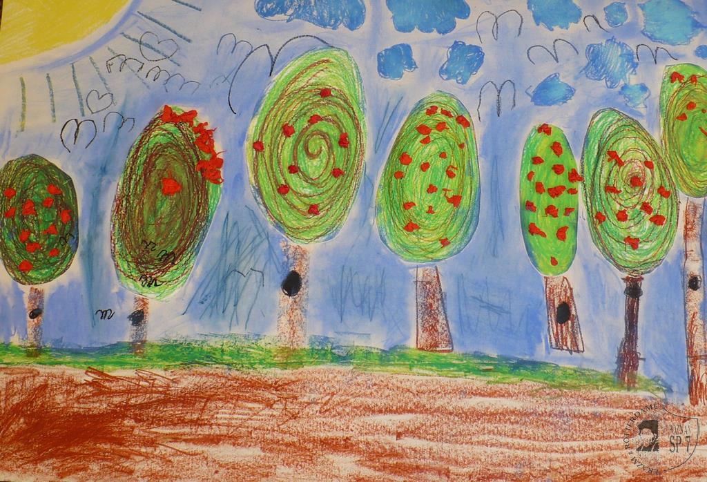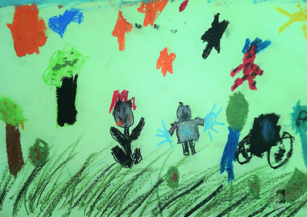 Namalowane obrazki były bardzo różnorodne, a kształty i kolory niepowtarzalne. Dzieci trafnie zauważyły, że muzyka inspiruje do rysowania i malowania.