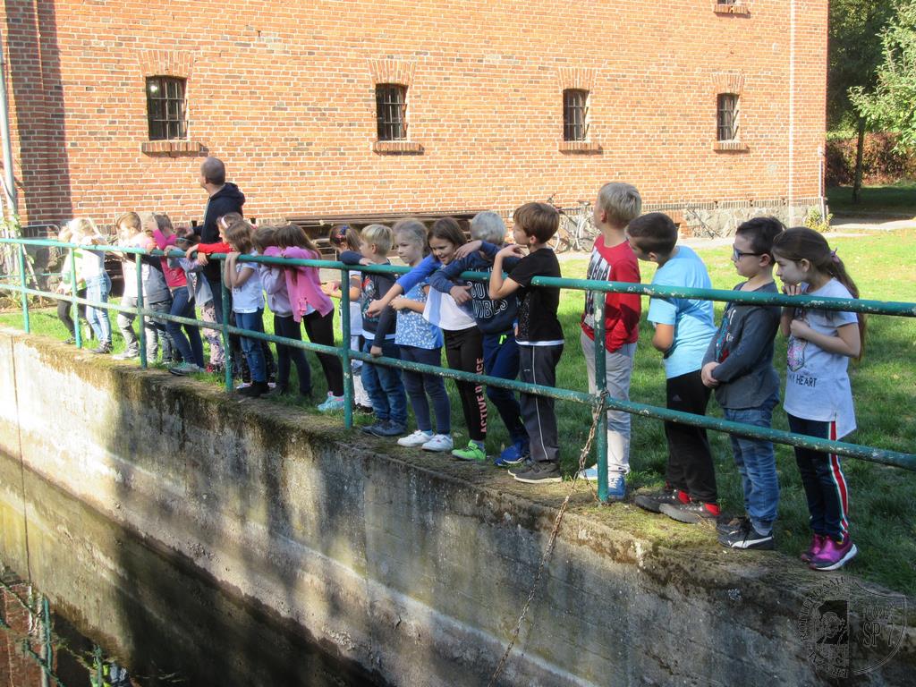Kolejnym etapem wycieczki było zwiedzanie Muzeum Młynarstwa w Jaraczu. Dzieci poznały dawne maszyny do mielenia ziarna, zwiedziły stary młyn wodny, zobaczyły w jaki sposób spiętrza się wodę w rzece Wełnie. Zobaczyły też wiatrak. Dowiedziały się, co zrobić, aby jego skrzydła były zwrócone w stronę wiatru.