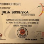 W dniach 26-28 października 2018 roku, Julia Borowska z klasy 7A brała udział w zawodach XX FSKA World Karate Tournament, odbywających się w miejscowości Almada w Portugalii. Łącznie brało w nich udział tysiąc zawodników z całego świata, którzy zmagali się w czterech konkurencjach.