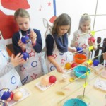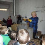 Najpierw wszyscy zobaczyliśmy jak w dmuchalni z wąskiej szklanej rurki pod wpływem ciepła i wdmuchiwanego powietrza powstają szklane bańki różnej wielkości. Bombki mogą mieć różne inne kształty, np. dzwoneczków czy gwiazdorków. Potem bańki te są wypełniane substancją chemiczną, która pod wpływem wysokiej temperatury substancja przyjmuje srebrny kolor. Dowiedzieliśmy się, że jeśli dodany zostanie inny barwnik, to bombki mają kolor czerwony, złoty, niebieski. Kiedy już bombka ma odpowiednią barwę trafia do rąk pań, które pracują w dziale zwanym dekoratornią. Tu błyszczące lub matowe kule zamieniają się w prawdziwe dzieła sztuki. Na bombkach pojawiają się choinki, gwiazdki, śnieg, a także przepiękne koronki namalowane farbą i brokatem.