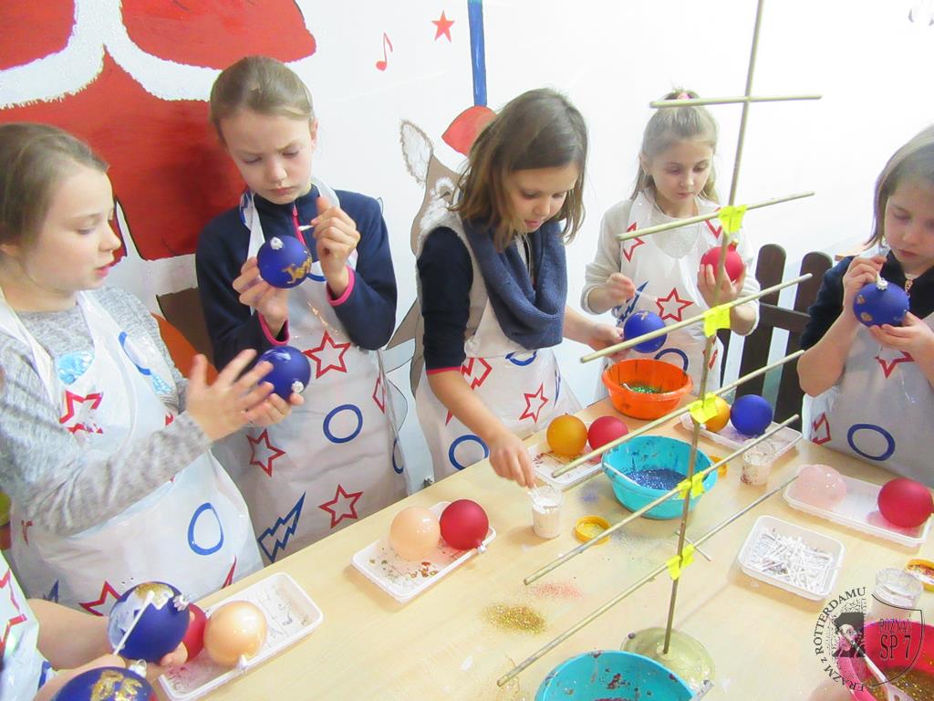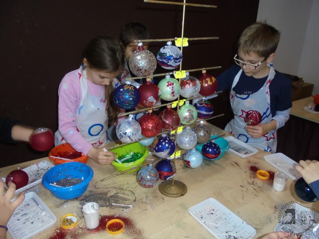 Kiedy tak podziwialiśmy te piękne ozdoby zamarzyło się nam, aby samemu wykonać podobne. Spełniło się nasze marzenie i wzięliśmy udział w warsztatach dekorowania bombek. Okazało się, że pośród nas było wielu utalentowanych plastycznie uczniów. Efekty naszej pracy widać na zdjęciach.