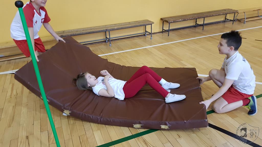 W czasie powstań, kiedy polska ludność walczyła o wyzwolenie z rąk zaborców, niejednokrotnie odważni Polacy zostawali ranni. Druga konkurencja dotyczyła umiejętności kooperacji i pomocy osobom poszkodowanym. Podzieliliśmy się na kilkuosobowe drużyny i sprawnie udzieliliśmy pomocy potrzebującym, Współpracowaliśmy na medal, dzięki czemu udało nam się opatrzyć i przetransportować rannych na materacach w bezpieczne miejsce.