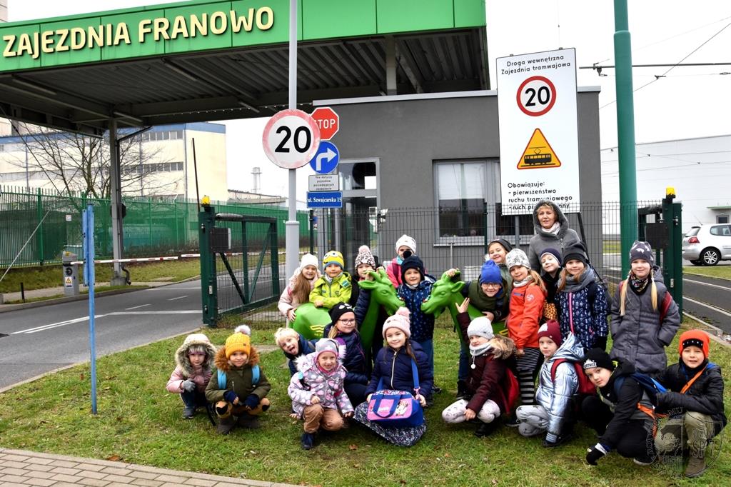 15 listopada uczniowie klasy 1b pojechali na wycieczkę do zajezdni na poznańskim Franowie. Zajezdnia ta jest największą i najnowocześniejszą zajezdnią tramwajową w Polsce. Na miejscu dowiedzieliśmy się, że jest także jedną z najnowocześniejszych w Europie. Zanim dotarliśmy do zajezdni przejechaliśmy przez całe miasto tramwajem i specjalnym tunelem na Franowie. Na miejscu pan kierownik wraz z panem motorniczym zaprosili nas do tramwaju, którym zwiedzaliśmy teren zajezdni.