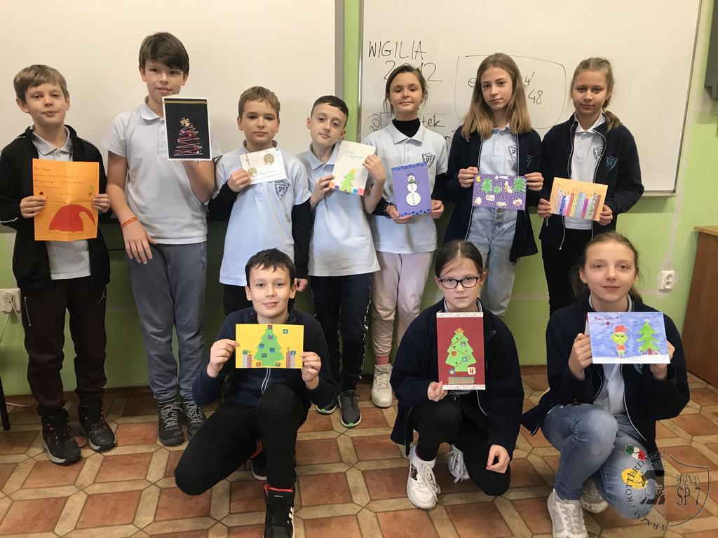 Uczniowie klas 5D i 5F, w grudniu uczestniczyli w projekcie e-twinningowym polegającym na wymianie kartek świątecznych ze szkołą z Łomnicy. Kartki należało przygotować własnoręcznie oraz samodzielnie wymyślić treść życzeń w języku angielskim. Dodatkowo każdy uczeń zyskał swojego korespondencyjnego partnera od którego również otrzymał piękną kartkę.