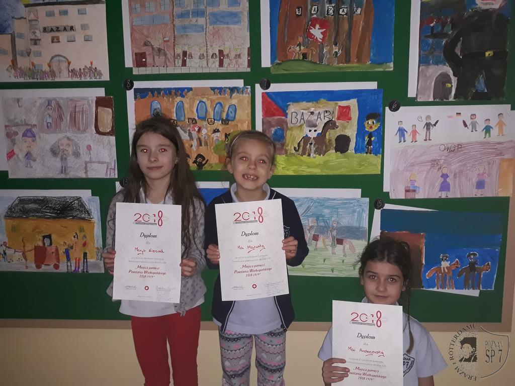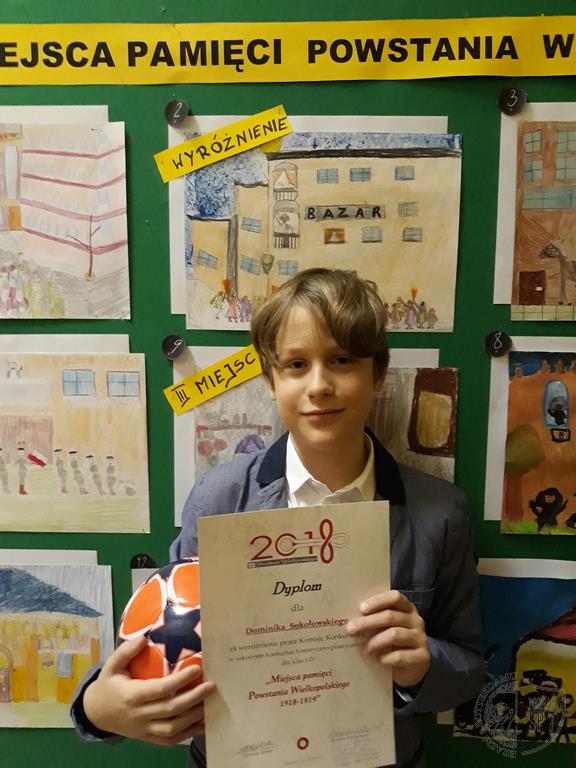 Z okazji 100 rocznicy Powstania Wielkopolskiego odbył się w naszej szkole konkurs historyczno-plastyczny zorganizowany dla klas I-IV pt.: Miejsca pamięci Powstania Wielkopolskiego 1918-1919.