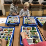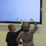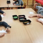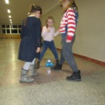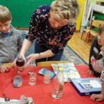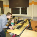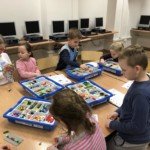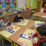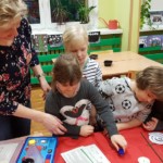 Dzieci z radością i ogromnym zapałem rozwiązywały zagadki przygotowane przez panią Kasię. Okazało się, że nie sprawiły one im najmniejszego kłopotu i przyszli uczniowie świetnie poradzili sobie z tym zadaniem. Po zdaniu szkolnego egzaminu dzieci udały się wesołym pociągiem do sal na pierwsze i drugie piętro. Tam na nich czekały różnorodne zajęcia. Dzieci uczestniczyły w zajęciach plastycznych, ruchowych, w zajęciach z wykorzystaniem tablicy interaktywnej, w eksperymentach i doświadczeniach. Grały na bum bum rurkach, wzięły udział w warsztatach teatralnych japońskiego teatru Kamishibai, poprzez zabawę uczyły się języka angielskiego. Uczestniczyły także w zajęciach komputerowych z wykorzystaniem robotów.