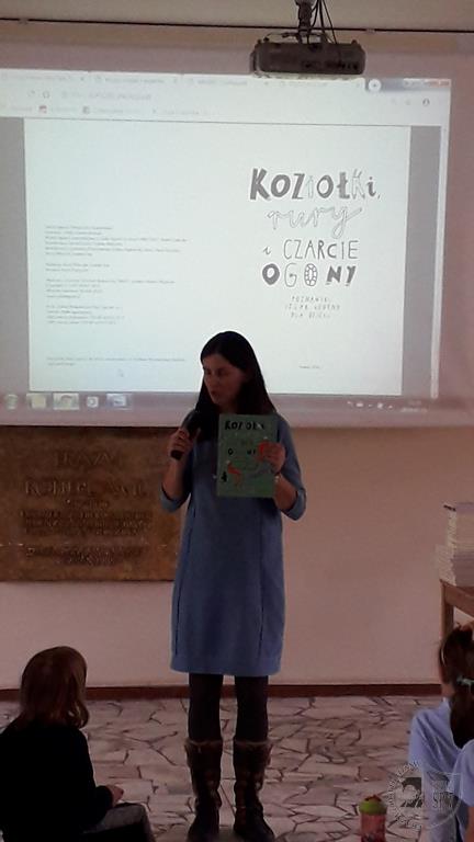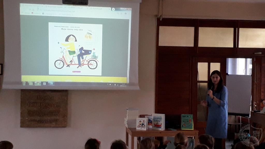 Podczas spotkania Pani Małgosia zaprezentowała dzieciom niezwykłe książki i zachęcała do czytania. Wspólnie przeczytaliśmy książkę pt. Moja mama, mój tata, autorstwa naszego gościa. Dowiedzieliśmy się również, jak powstawała książka Koziołki, rury i czarcie ogony, która została wydana w ramach projektu Poznański