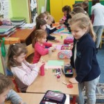 Pomysł oczywiście należał do naszych gości, ale już wykonanie było wspólne. Miło było patrzeć jak moi uczniowie pracowali ramię w ramię Maluszkami.