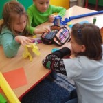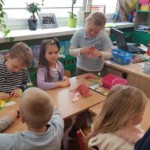 Ostatnie zadanie polegało na wykonaniu papierowego przyjaciela. Do dyspozycji dzieci miały szary rulonik oraz szereg materiałów papierniczych.