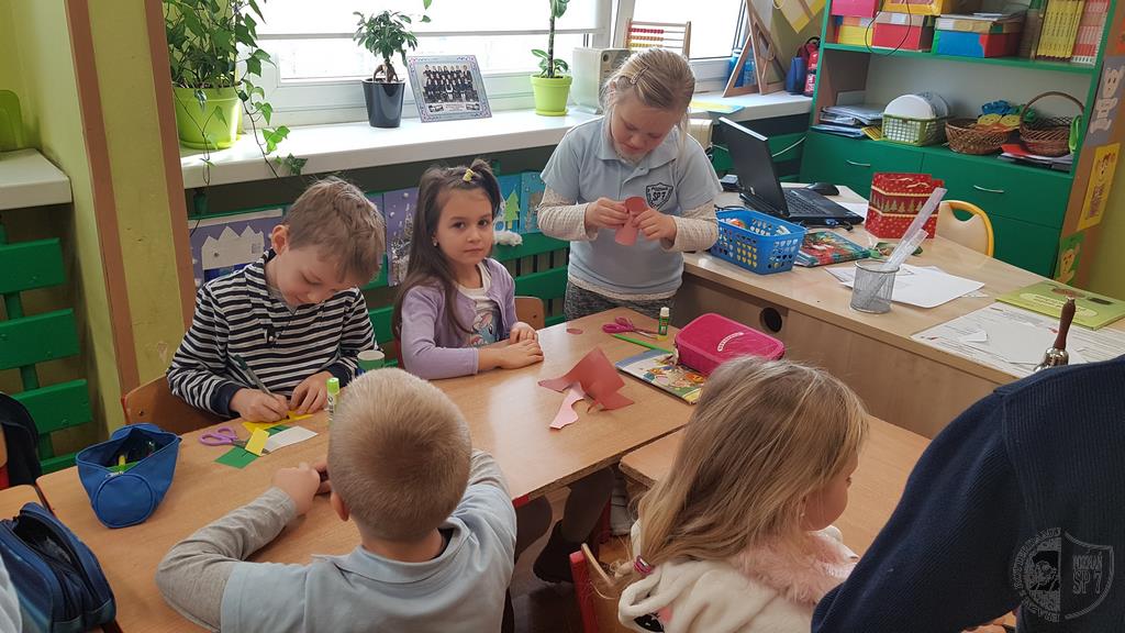 Pomysł oczywiście należał do naszych gości, ale już wykonanie było wspólne. Miło było patrzeć jak moi uczniowie pracowali ramię w ramię Maluszkami.