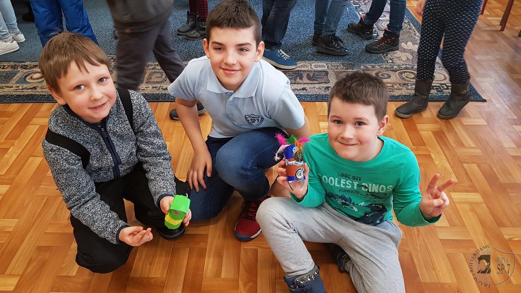 1 lutego uczniowie klasy 3a gościli u siebie grupę sześciolatków z Przedszkola nr 28. Po powitaniu naszych miłych gości w holu szkoły, udaliśmy się na drugie piętro do naszej sali lekcyjnej. Każdy z naszych Milusińskich, otrzymał swojego opiekuna w postaci ucznia klasy trzeciej, aby pewniej czuł się, pokonując korytarze Siódemki. Po przyjściu do sali każdy z uczniów i przedszkolaków przedstawił się, a następnie zaprosiliśmy naszych gości do zabawy integracyjnej Sałatka. Okazało się, że pomimo różnicy wieku, wiele łączy uczniów klasy 3 i przedszkolaków.