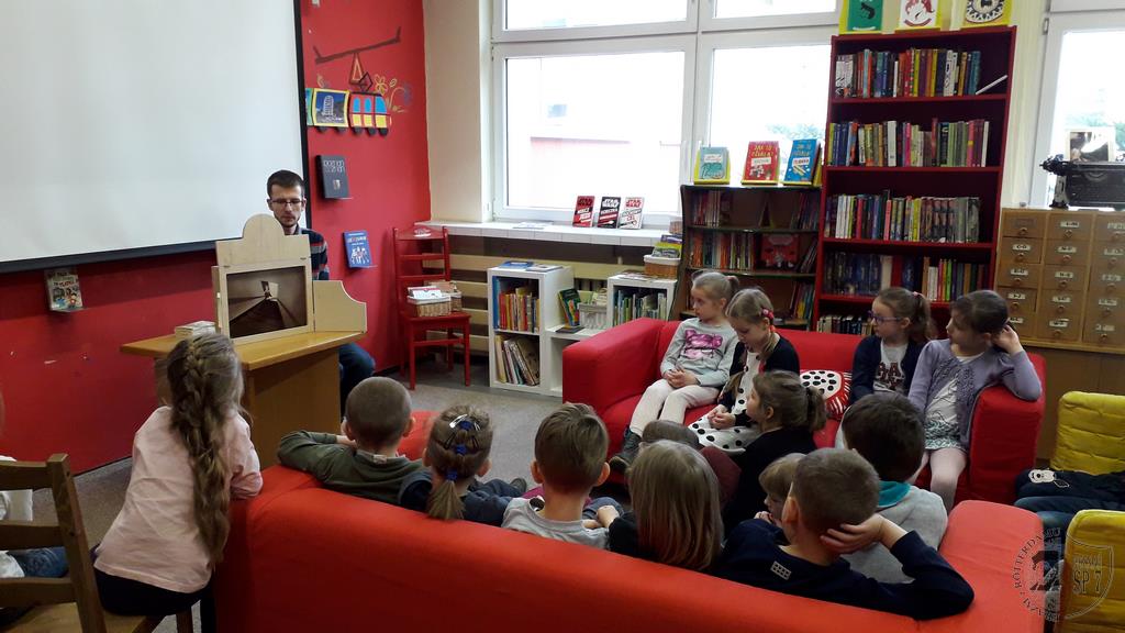 Podczas spotkania dzieci poznały TEATR KAMISHIBAI. Jest to tradycyjna japońska sztuka opowiadania za pomocą obrazków wykonanych na papierowych planszach, wsuwanych do drewnianego rozkładanego kuferka. W ten sposób, czytany tekst ilustrowany jest obrazkami w formie teatrzyku. Nasi milusińscy z wielką uwagą wysłuchali „Bajki o prawdziwym Szewczyku Dratewce„, a następnie opowiadali o swoich wrażeniach i odpowiadali na pytania dotyczącej jej treści. Wspólnie spędzony czas w bibliotece przebiegał w miłej i przyjaznej atmosferze.