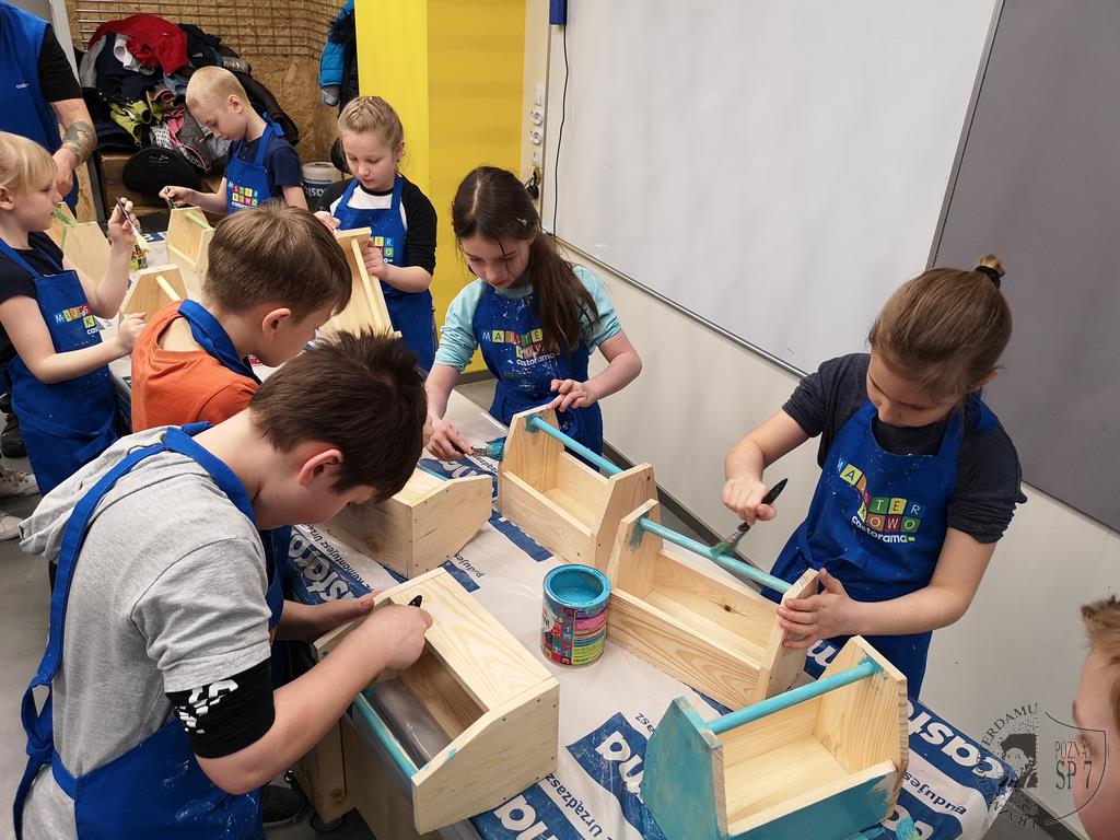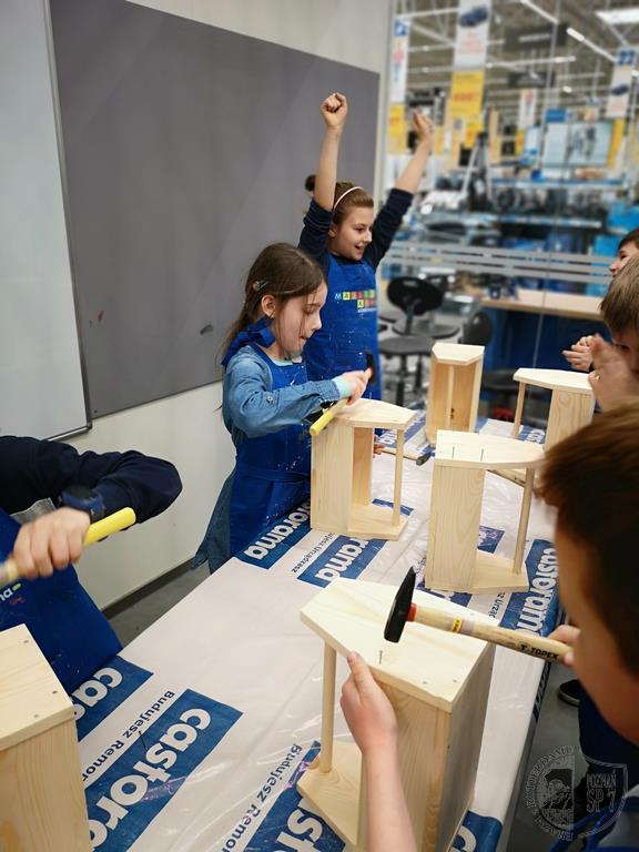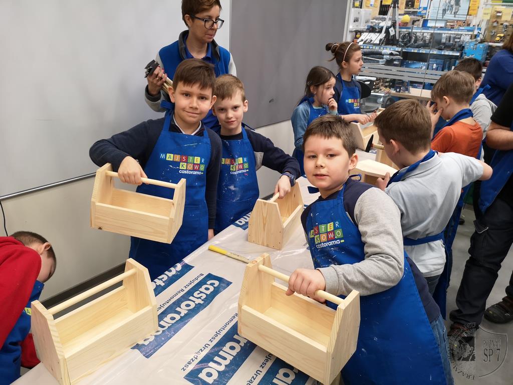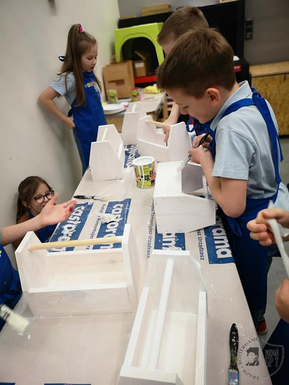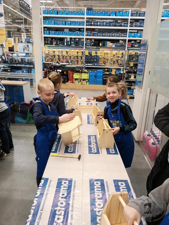 3 kwietnia udaliśmy się do Castoramy na warsztaty zatytułowane Majsterkowo. Samodzielnie zbijaliśmy, malowaliśmy i ozdabialiśmy drewniane skrzynki na skarby. Wielu z nas odkryło w sobie talent do majsterkowania. Na koniec otrzymaliśmy pamiątkowe dyplomy i bierki.