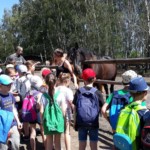 4 czerwca klasy 2b i 2c wybrały się na wycieczkę do Traperskiej Osady w Bolechówku. Program naszej wyprawy był niezwykle bogaty. Na początku szukaliśmy tropów dzikich zwierząt żyjących w Puszczy Zielonka. Następnie odwiedziliśmy zagrody ze zwierzętami, które mieszkają w Osadzie. Były to: strusie, konie, kozy, emu oraz psy rasy syberian husky. Szczególnie wzruszył nas los pięknej danielki, która straciła nogę za sprawą kłusowników zakładających w lasach wnyki.