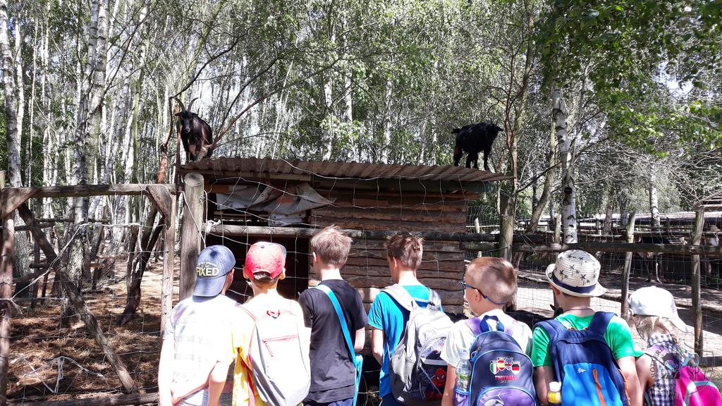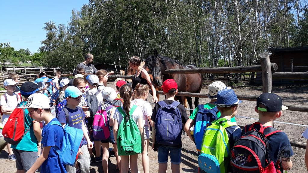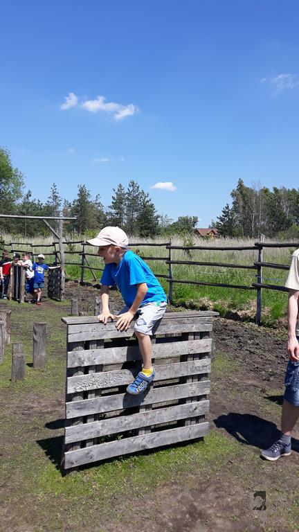 4 czerwca klasy 2b i 2c wybrały się na wycieczkę do Traperskiej Osady w Bolechówku. Program naszej wyprawy był niezwykle bogaty. Na początku szukaliśmy tropów dzikich zwierząt żyjących w Puszczy Zielonka. Następnie odwiedziliśmy zagrody ze zwierzętami, które mieszkają w Osadzie. Były to: strusie, konie, kozy, emu oraz psy rasy syberian husky. Szczególnie wzruszył nas los pięknej danielki, która straciła nogę za sprawą kłusowników zakładających w lasach wnyki.