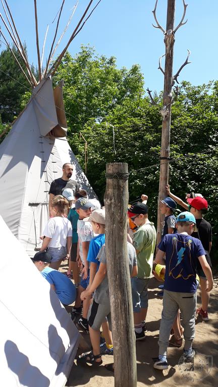 Każdy z uczestników wycieczki pokonał bardzo trudny tor przeszkód. W indiańskich namiotach tipi wysłuchaliśmy ciekawych opowieści naszego przewodnika o życiu i zwyczajach indiańskich plemion. Podczas wycieczki zostaliśmy ugoszczeni pysznym drożdżowym ciastem i kiełbaską z ogniska.