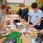 Zadania z wielokątami i wycinkami koła okazały się na tyle ciekawe, iż moi uczniowie postanowili dopisać dodatkowy punkt scenariusza, wykorzystując wszystkie wycięte przez nich elementy geometryczne na stworzenie różnorodnych postaci zwierząt i ludzi. I jak tu nie mówić o kreatywność
