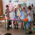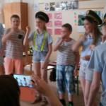 12 czerwca – w upalne popołudnie odbyła się premiera przedstawienia naszego szkolnego kabareciku Ale wkoło jest wesoło. Sami przygotowaliśmy scenariusz, wybraliśmy fragmenty piosenek, zgromadziliśmy rekwizyty. Nie zabrakło nawet skrzypiec!