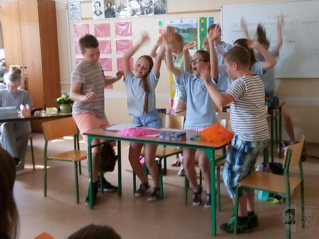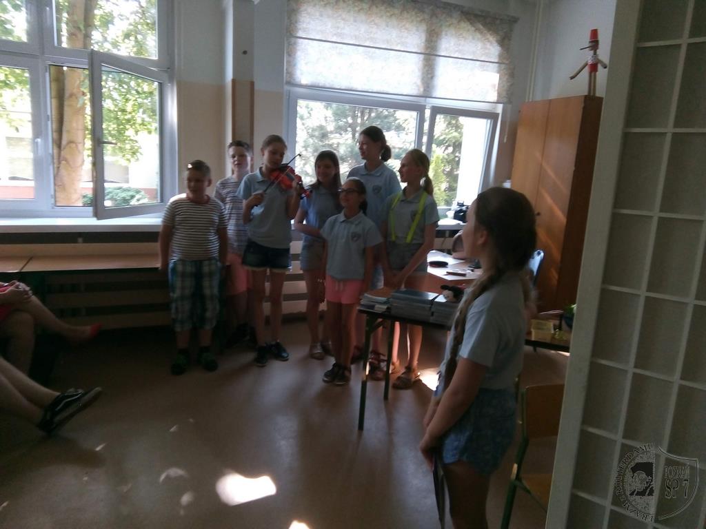 12 czerwca – w upalne popołudnie odbyła się premiera przedstawienia naszego szkolnego kabareciku Ale wkoło jest wesoło. Sami przygotowaliśmy scenariusz, wybraliśmy fragmenty piosenek, zgromadziliśmy rekwizyty. Nie zabrakło nawet skrzypiec!