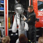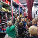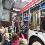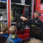 Przywitał nas pan Paweł, który oprowadził nas po jednostce, zaznajomił z charakterem bardzo ciekawej, ale i bardzo ciężkiej pracy ludzi, niosących pomoc każdemu: dużemu, małemu, a także zwierzętom, które wpadły w tarapaty. Mogliśmy z bliska zobaczyć, jak wyposażony jest każdy strażacki wóz.