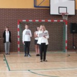 Następnie pani Dyrektor podkreśliła, że jest dumna, iż Siódemka wita swoich uczniów w nowej i odświeżonej szacie, bo Siódemkowicze zasługują na to, aby uczyć się w godnych warunkach. Ogromną w tym zasługą wykazali się goście, którzy przybyli na inaugurację Pani Małgorzata Skoniecka Pawłowska i radny miasta Poznania Pan Tomasz Stachowiak. Pani Dyrektor wskazała w swoim wystąpieniu, że nowe boisko do piłki koszykowej i odświeżone obiekty sportowe to dowód na zrozumienie potrzeb społeczności szkolnej. Nowe obiekty będą nie tylko wykorzystywane podczas lekcji wychowania fizycznego i treningów, ale także podczas swobodnych zajęć rekreacji rodzin uczniów i innych mieszkańców osiedla. Słowa podziękowań popłynęły także do wszystkich rodziców uczniów Siódemki, za inicjatywę szafkową w szkole, dofinansowanie nagród dla absolwentów i najlepszych uczniów i wiele innych pomysłów.