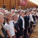 Na koniec swojego wystąpienia Pani Dyrektor ogłosiła rok szkolny 2019/2020 rokiem Pewnej Szkoły. Pewnej, bo pełnej radości, ciekawości, nadziei, wiedzy i ciągłych zmian. Pewnej Szkoły, która odkodowuje sukces, w której osiągnięcia uczniów są znane i celebrowane. Bo Pewna Szkoła daje możliwość odniesienia sukcesu każdemu uczniowi. Pewna Szkoła to taka szkoła, która doświadcza potrzeby przeorganizowania swoich zwyczajów, wzorców i wartości, ponieważ uczniowie są kreatywni, zdolni i nieprzewidywalni. W Pewnej Szkole Sukces nie jest celem, ale etapem w procesie uczenia się; jest niezbędnym elementem w procesie budowania tożsamości, samorealizacji i autoprezentacji uczniów. Pewna Szkoła korzysta z edukacji pozaformalnej i nieformalnej, używa wielorakich źródeł, możliwości, darów i szans – w jednym celu – rozwoju uczniów. W Pewnej Szkole każdy uczeń powinien mieć pewność rozwoju poprzez właściwie dobrany i właściwie realizowany proces uczenia się. W takiej szkole każdy uczeń zasługuje na wyzwania i mądry proces uczenia się, który prowadzi Ucznia Pewnej Szkoły do osiągnięć dydaktycznych, społecznych, samorealizacji, obywatelskiej postawy i osobistego rozwoju. W Pewnej Szkole – wysoce wykwalifikowany, troskliwy i entuzjastycznie nastawiony zespół nauczycieli jest konieczny do zapewnienia sukcesu wszystkim uczniom. Pewna Szkoła zmienia uczniów, zmienia się dzięki pewnym uczniom.