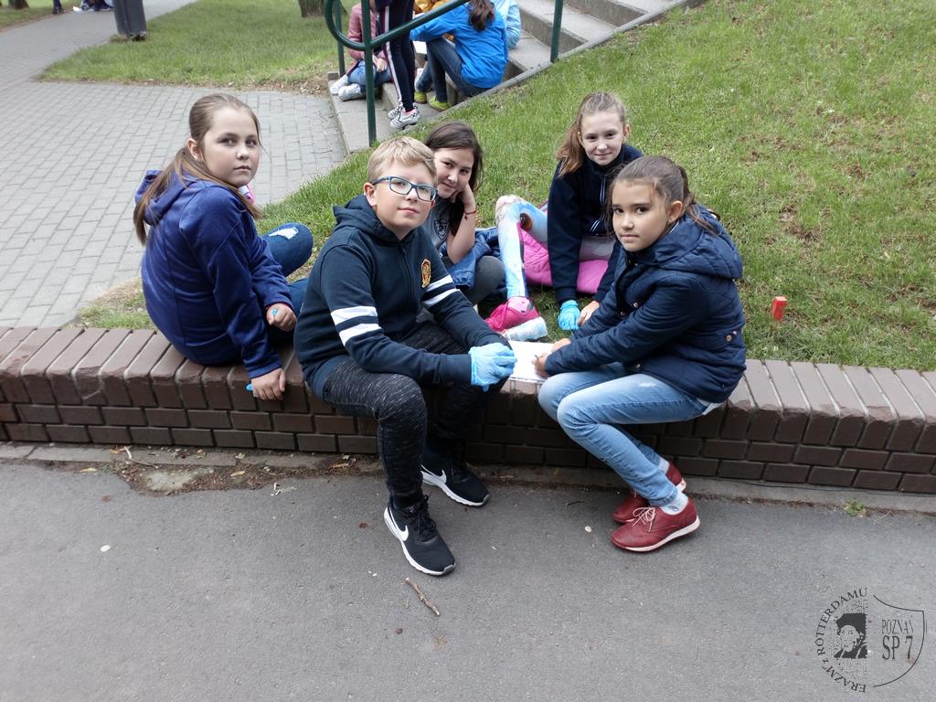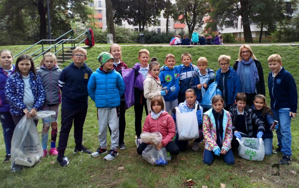 Znów, zaopatrzeni w rękawiczki i worki uczniowie, z zapałem wyruszyli na osiedle. Klasy II, III i IV posprzątały teren wokół najbliższego otoczenia szkoły.