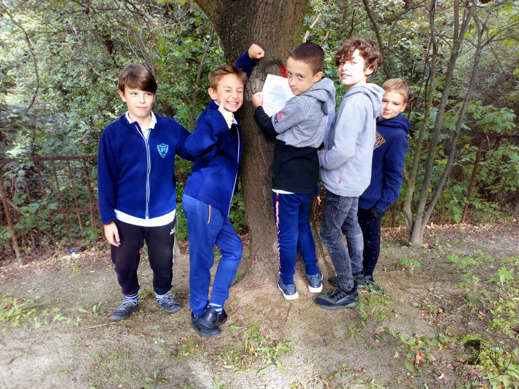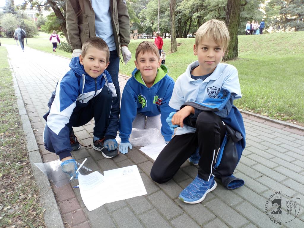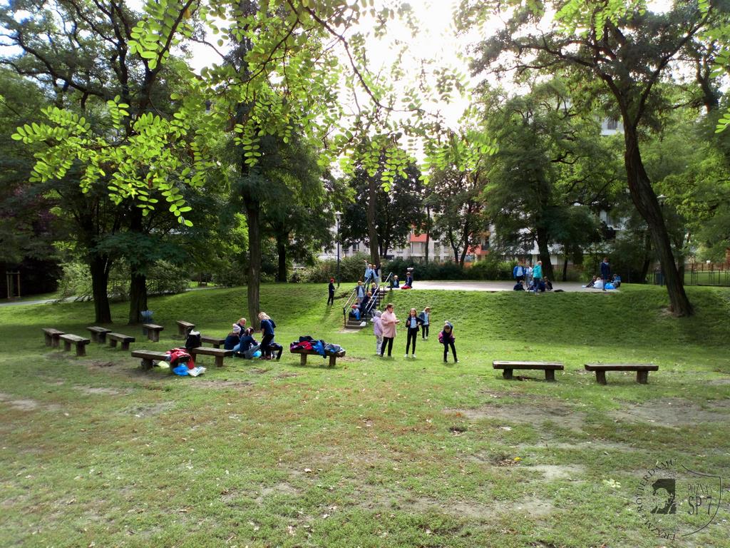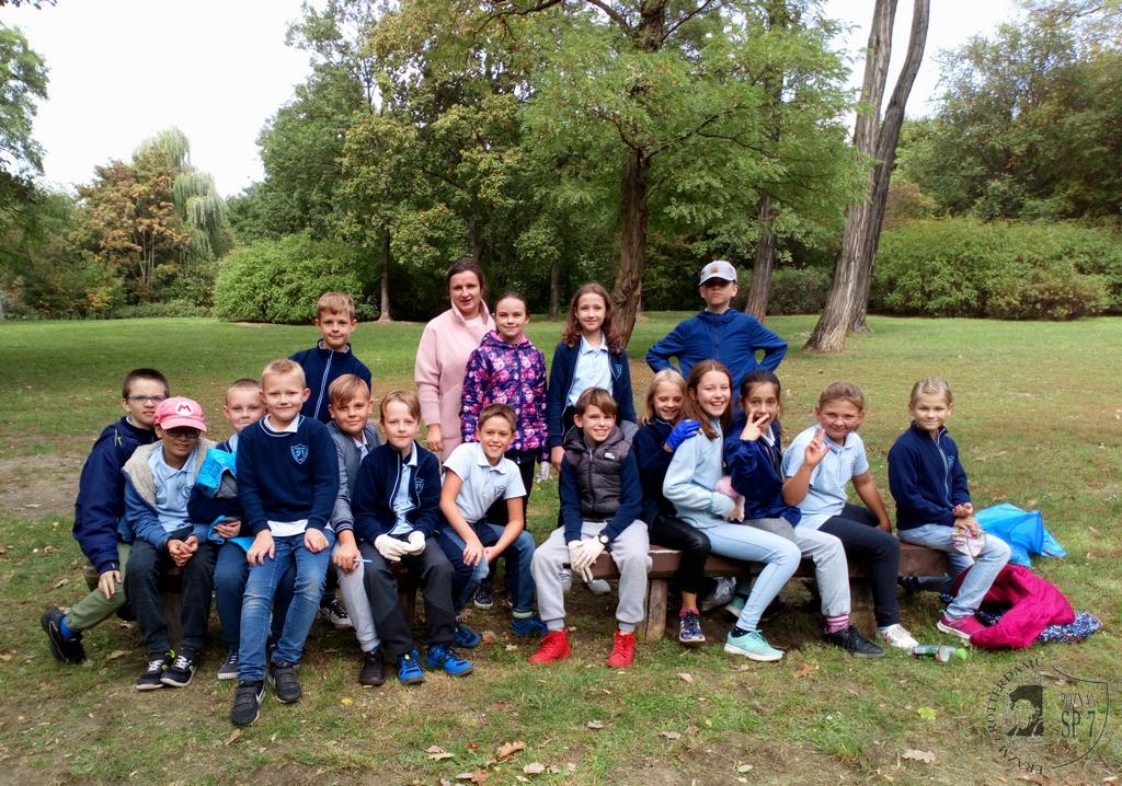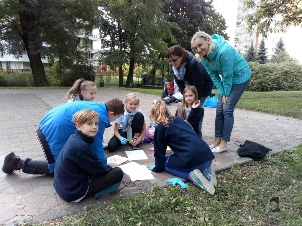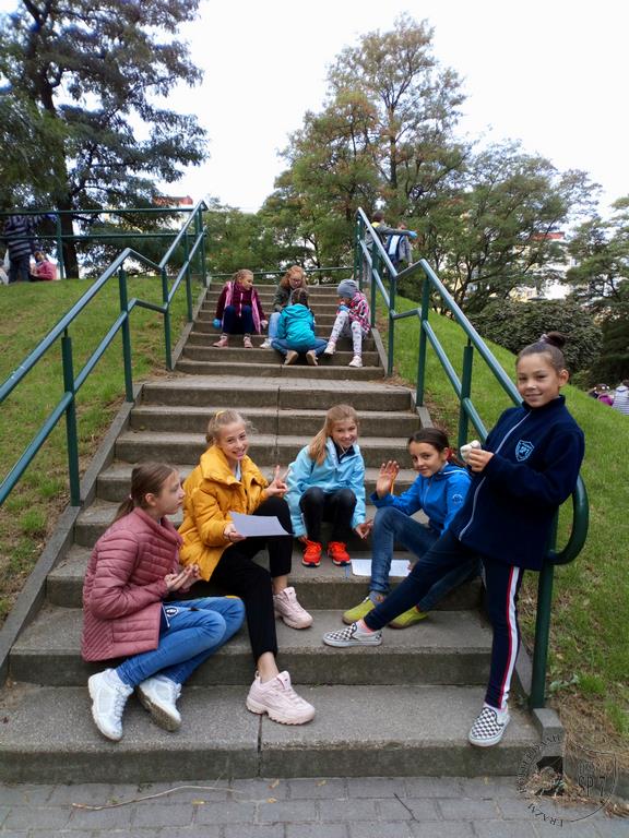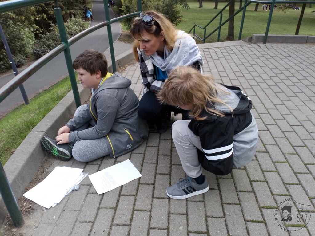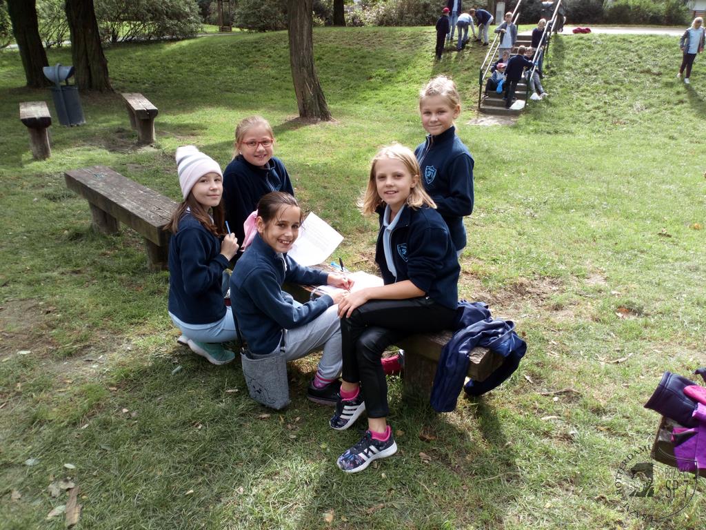 Uczniowie klas V dodatkowo zmagali się z zadaniami, które przygotowały panie od przyrody: poznawali historię Parku im. Ks. Jasińskiego, obliczali wysokość wybranego drzewa, charakteryzowali popularną w parku robinię akacjową (nazywaną błędnie akacją!), analizowali składniki pogody itp.