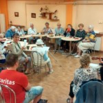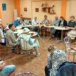 A że nie mieliśmy spotkań w dni wakacyjne (a właściwie czemu nie) to sami przygotowywali repertuar! I tak powstała samozwańcza sekcja bębniarska, na razie bez nazwy. O dziwo, Seniorkom spodobało się mocne uderzenie i z tego entuzjazmu bębny bębniły 3 lipca, 7 sierpnia i 4 września, i tym samym weszły do stałego repertuaru spotkań.
