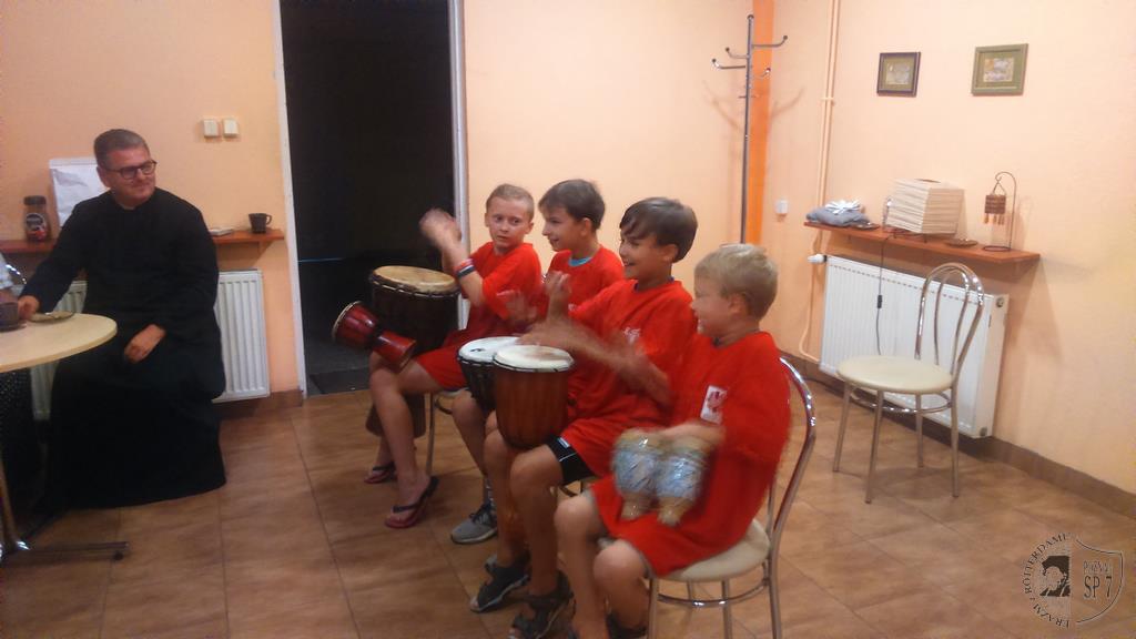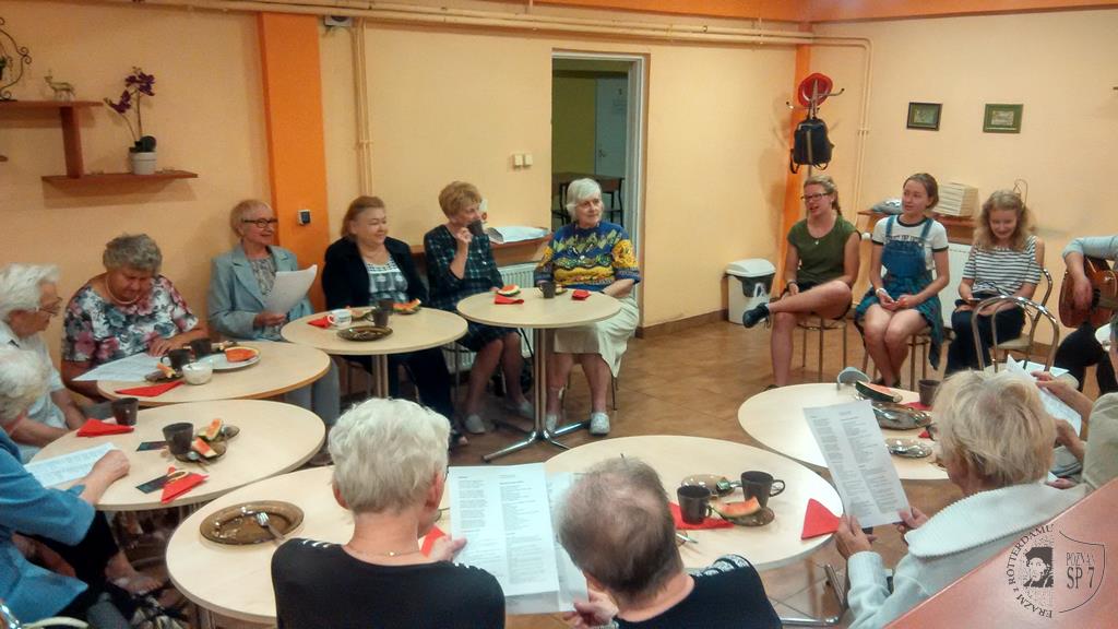 A że nie mieliśmy spotkań w dni wakacyjne (a właściwie czemu nie) to sami przygotowywali repertuar! I tak powstała samozwańcza sekcja bębniarska, na razie bez nazwy. O dziwo, Seniorkom spodobało się mocne uderzenie i z tego entuzjazmu bębny bębniły 3 lipca, 7 sierpnia i 4 września, i tym samym weszły do stałego repertuaru spotkań.