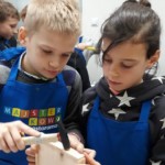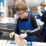 31 października nasza klasa wzięła udział w warsztatach Majsterkowo w Castoramie w Komornikach. Celem naszych zajęć było wykonanie karmników dla ptaków. Zajęcia rozpoczęły się od dobrania w pary. Pierwsze zadanie polegało na zawiązaniu sobie nawzajem fartuchów. Na kolejnych etapach pomoc koleżeńska także była niezbędna i bardzo cenna. Niektórzy z nas po raz pierwszy posługiwali się młotkiem i nigdy wcześniej nie wbijali gwoździ. Okazało się jednak, że radziliśmy sobie wspaniale. Wystarczyło być uważnym, dokładnym i cierpliwym. Na koniec każdy z nas pomalował karmnik wybranym kolorem. Zapraszamy do galerii zdjęć z naszych warsztatów i podziwiania efektów naszej pracy.