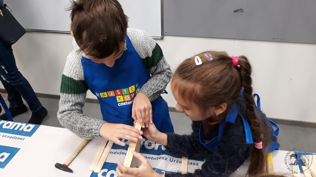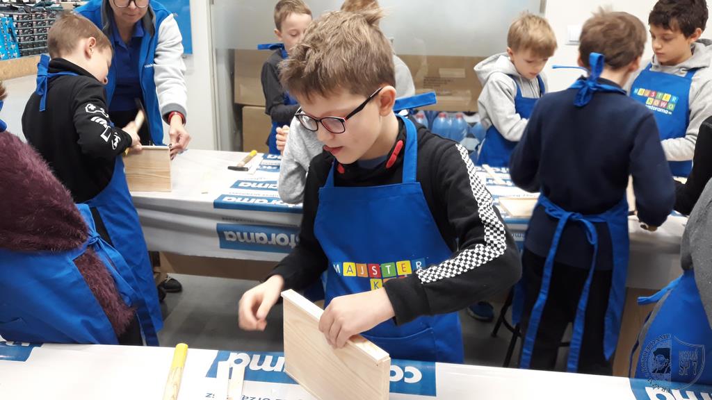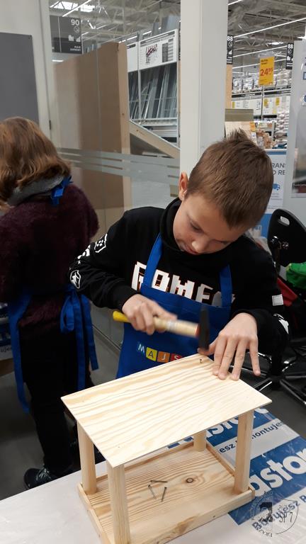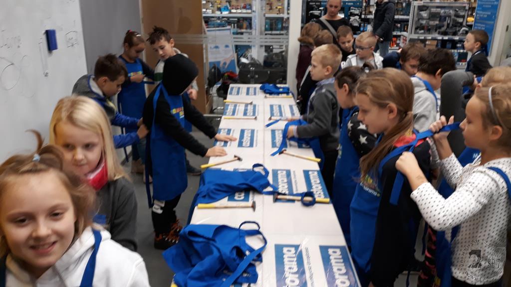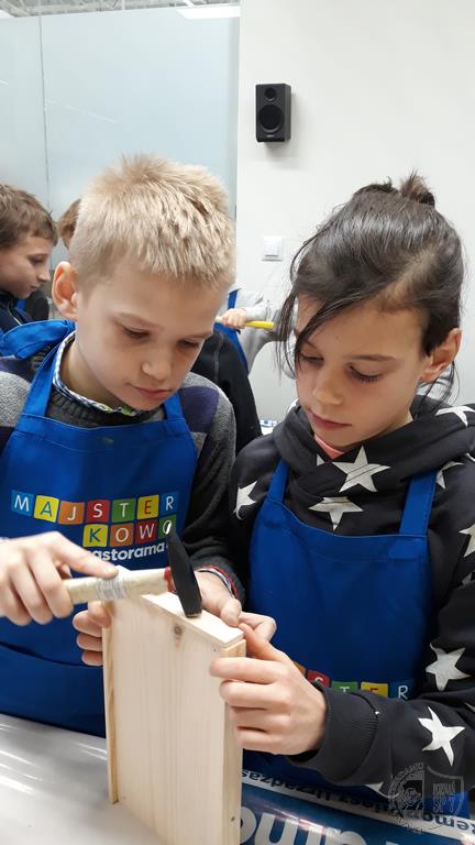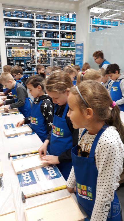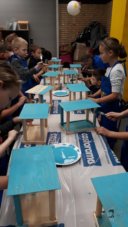 31 października nasza klasa wzięła udział w warsztatach Majsterkowo w Castoramie w Komornikach. Celem naszych zajęć było wykonanie karmników dla ptaków. Zajęcia rozpoczęły się od dobrania w pary. Pierwsze zadanie polegało na zawiązaniu sobie nawzajem fartuchów. Na kolejnych etapach pomoc koleżeńska także była niezbędna i bardzo cenna. Niektórzy z nas po raz pierwszy posługiwali się młotkiem i nigdy wcześniej nie wbijali gwoździ. Okazało się jednak, że radziliśmy sobie wspaniale. Wystarczyło być uważnym, dokładnym i cierpliwym. Na koniec każdy z nas pomalował karmnik wybranym kolorem. Zapraszamy do galerii zdjęć z naszych warsztatów i podziwiania efektów naszej pracy.