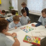Uczniowie przybyli na lekcje z grami, takimi jak: Kości, Domino, Grzybobranie, Warcaby, Szachy, Chińczyk, Wyścig matematyczny, Dinoprzygoda, Pole rozrywek itp.