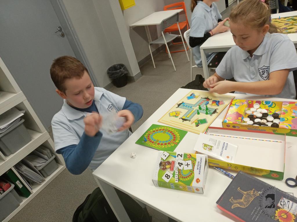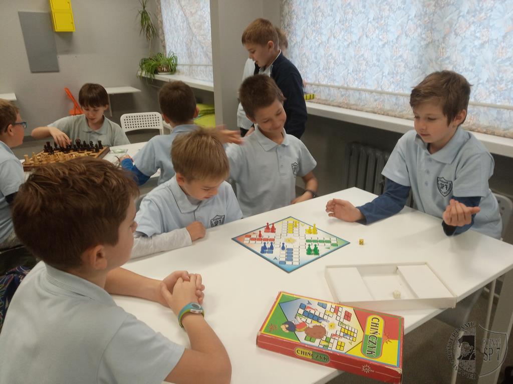 Uczniowie przybyli na lekcje z grami, takimi jak: Kości, Domino, Grzybobranie, Warcaby, Szachy, Chińczyk, Wyścig matematyczny, Dinoprzygoda, Pole rozrywek itp.