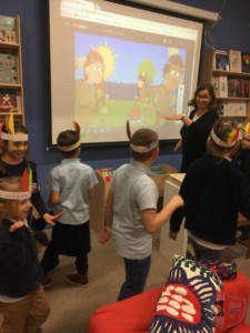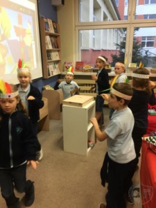 W tym tygodniu uczniowie obejrzeli przedstawienie kamishibai pt. Bajka o orle, który myślał, że jest kogutem. Jest to stara indiańska legenda, która uczy nas, że warto iść za głosem serca i spełniać swoje marzenia. Po wysłuchaniu tej niezwykłej opowieści pierwszaki samodzielnie wykonały pióropusze i odtańczyły indiański taniec.