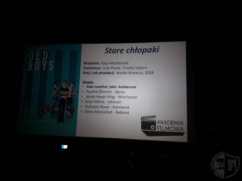 Uczniowie obejrzeli film Old boys w reżyserii T. MacDonald`a, który sięgnął do klasyki literatury francuskiej i adaptując na nowo historię Cyrano de Bergeraca przeniósł akcję filmu w lata 80. XX wieku do konserwatywnej szkoły z internatem dla chłopców, łącząc interesującą fabułę z typowo brytyjskim dowcipem. Budowanie relacji pomiędzy rówieśnikami, nauczycielami i uczniami i, co najważniejsze, parą głównych bohaterów, stanowi fascynujący szkielet tego obrazu.