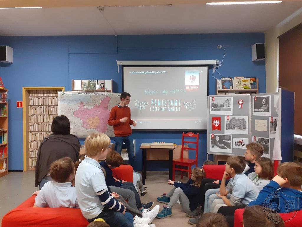 Na przełomie roku 2019/2020 klasy 3-7 miały okazję uczestniczyć w niezwykłych lekcjach historii zorganizowanych w szkolnej bibliotece. Podczas zajęć uczniowie poznali wydarzenia, które poprzedziły wybuch powstania wielkopolskiego. Obejrzeli przedstawienie kamishibai pt. Był taki grudzień. Opowieść o powstaniu wielkopolskim…