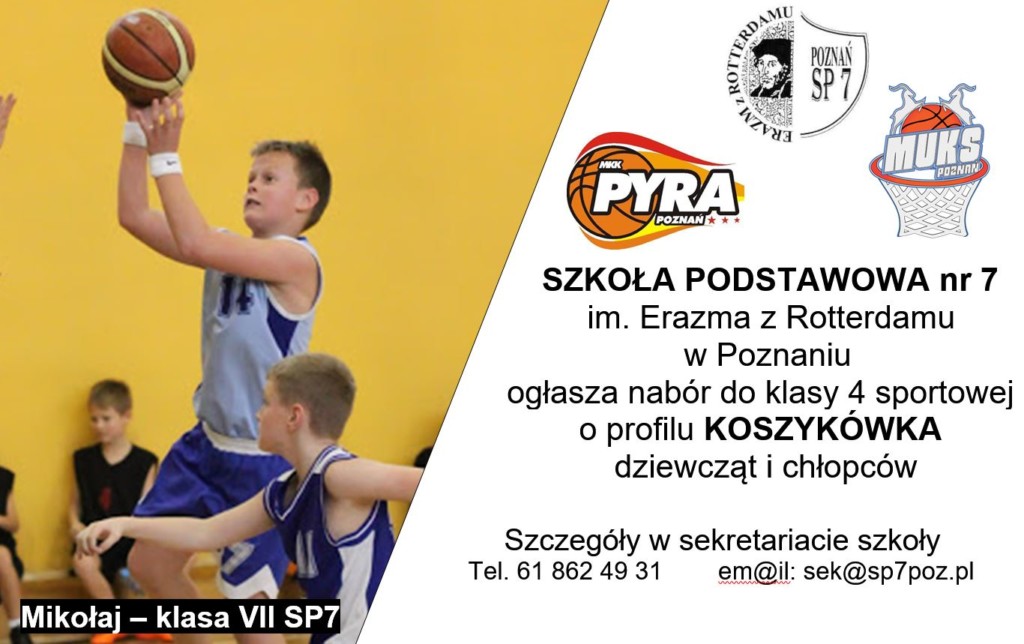 ogłasza nabór do klasy czwartej sportowej o profilu KOSZYKÓWKA dziewcząt i chłopców.