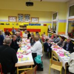 Po jasełkach ugościliśmy Babcie i Dziadków w naszej sali. Najpierw podarowaliśmy im wykonane przez nas gwiazdki, żeby nigdy nie omijało ich szczęście, radość i miłość. Natrudziliśmy się sporo, bo nie jest łatwo wykonać tak precyzyjną wycinankę, ale udało się !