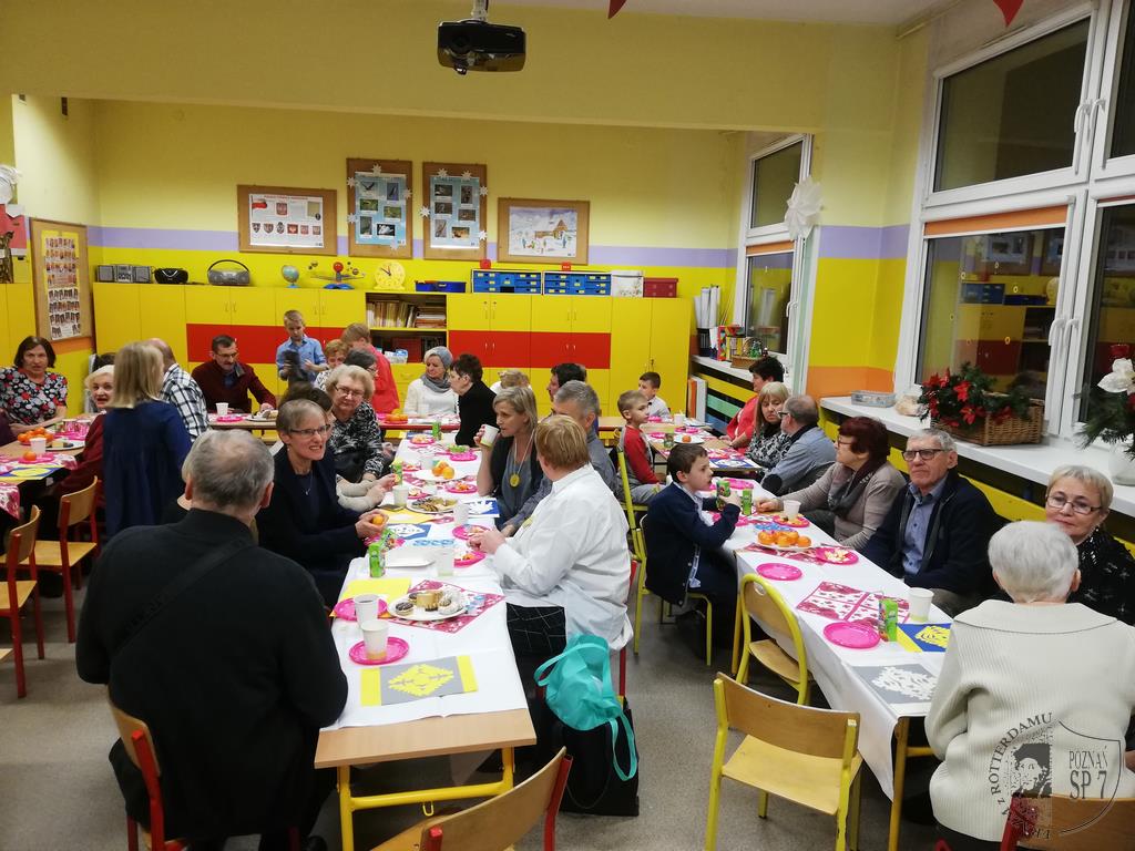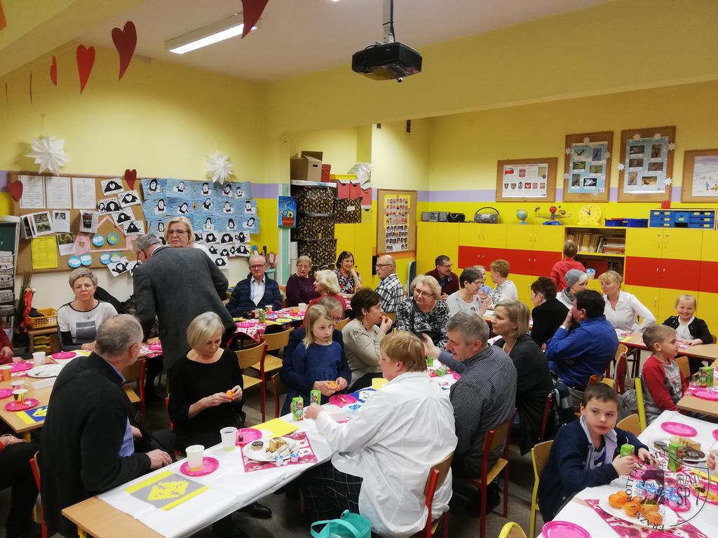 Seniorzy, uradowani obecnością młodego pokolenia, przy kawie, herbacie i słodkim poczęstunku wspaniale czuli się w naszej szkole, a zimne, styczniowe popołudnie przypominało bardziej słoneczny letni dzień To wszystko za sprawą ciepłej, rodzinnej atmosfery, jaka wytworzyła się między nami.