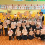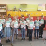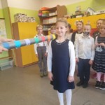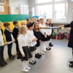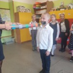 Dopiero po wykonaniu zadań, z którymi uczniowie świetnie sobie poradzili, przeszliśmy do części najważniejszej. Pierwszaki podczas ślubowania, głośno i z przekonaniem przyrzekały być pilnymi uczniami oraz rzetelnie wypełniać swoje obowiązki, o czym przypominać im będą otrzymane dyplomy. Następnie każdy przyjął gratulacje oraz został pasowany na ucznia wielkim ołówkiem przez swoją wychowawczynię. Uśmiechnięci Pierwszoklasiści otrzymali również słodki poczęstunek.