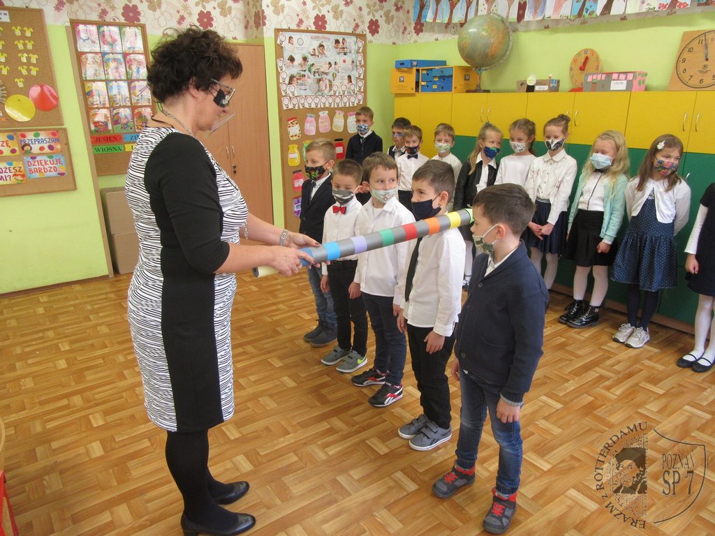 Podczas uroczystości, która z powodu pandemii każda z klas miała w swojej sali, Pierwszoklasiści pokazali, że potrafią pięknie śpiewać i recytować wiersze. Dzieci, wykonały również sporo zadań, które pokazały, że gotowi są by zostać uczniami. Pierwszoklasiści mieli za zadanie: wyrecytować wiersze, udowodnić, iż są odpowiedzialnymi uczestnikami ruchu drogowego jako piesi, rozmawiali o tym, kogo można nazwać dobrym uczniem, wykonali kilka zadań na spostrzegawczość, szukali rymów, rozwiązywali zagadki, układali puzzle.