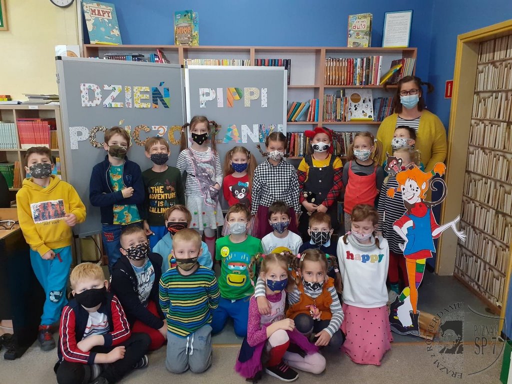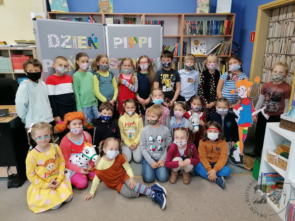 Tego dnia uczniowie klas I-III przyszli do szkoły ubrani w stylu Pippi. W czasie lekcji poznawali przygody bohaterki książki Astrid Lindgren i mogli zmierzyć się z różnymi zadaniami. Dzieci układały zaproszenie na przyjęcie urodzinowe Pippi, tworzyły grę memo, odkodowywały portret Pippi, rozwiązywały zadania matematyczne. Przygody Pippi stały się inspiracją do podjęcia dyskusji na tematy społeczne. Podczas wizyty w bibliotece klasy mogły zrobić sobie zdjęcie z Pippi. Chętni uczniowie wzięli udział w konkursach plastycznym i literackim.