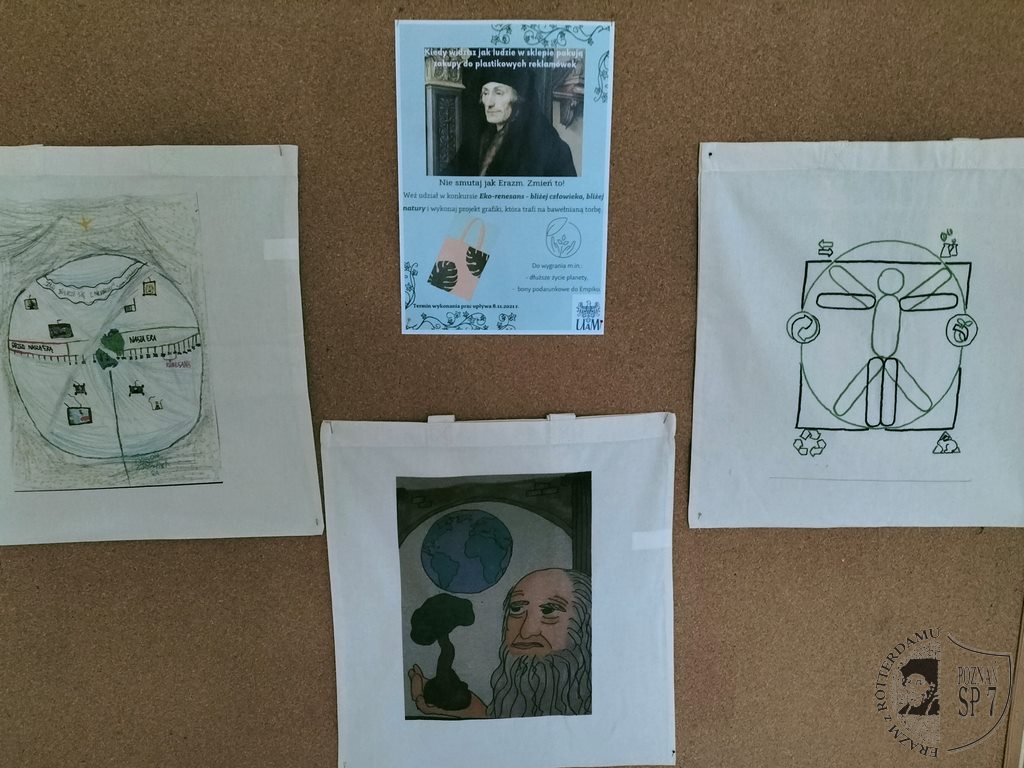 Miło nam poinformować, że w czwartek 16 grudnia zostały wręczone nagrody w Konkursie Ekorenesans bliżej człowieka, bliżej natury realizowanym przez Wydział Historii UAM w Poznaniu oraz Szkołę Podstawową nr 7 w Poznaniu w ramach naszej szkolnej innowacji pedagogicznej dla klas 4-8 pt. Złoty wiek. Aby wziąć udział w tym Konkursie należało zaprojektować logo związane z renesansem, które miało pojawić się na torbie materiałowej.